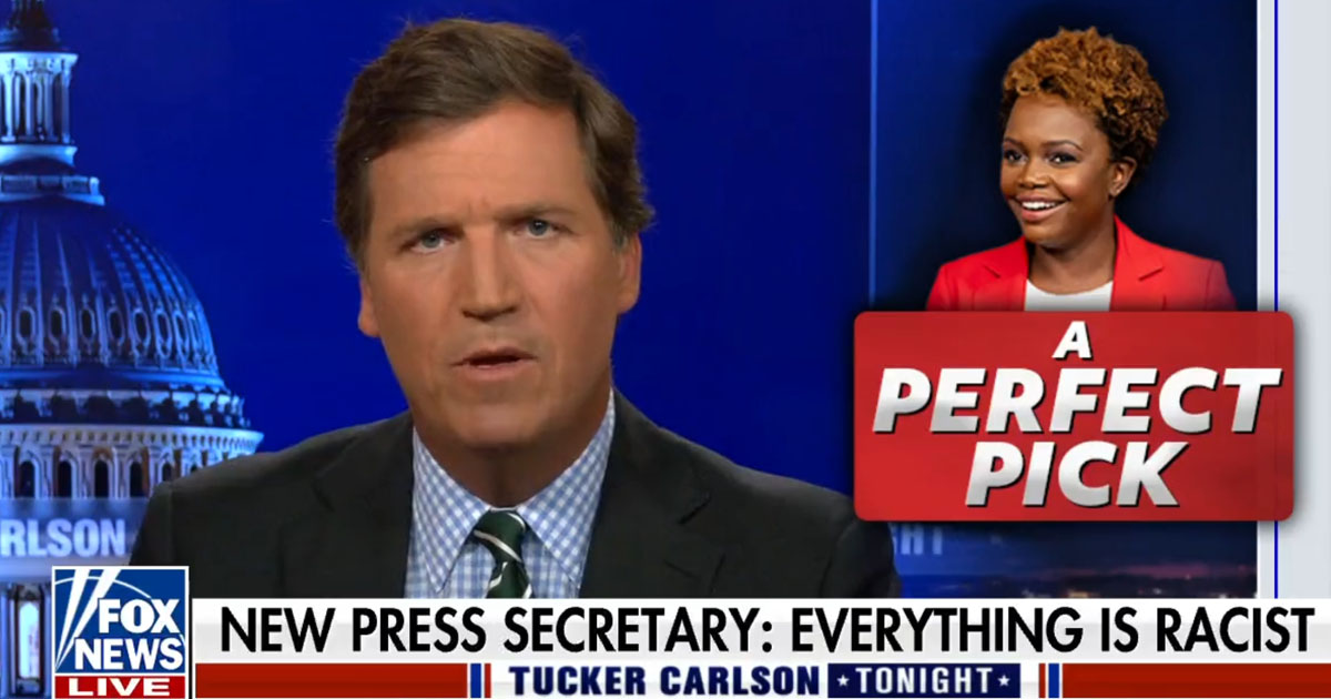 Fox News host Tucker Carlson stated on Tuesday that new White House press secretary Karine jean-Pierre is “perfect for the job” because “She’s in the right group” and to the Biden administration,”the group is all that matters.”