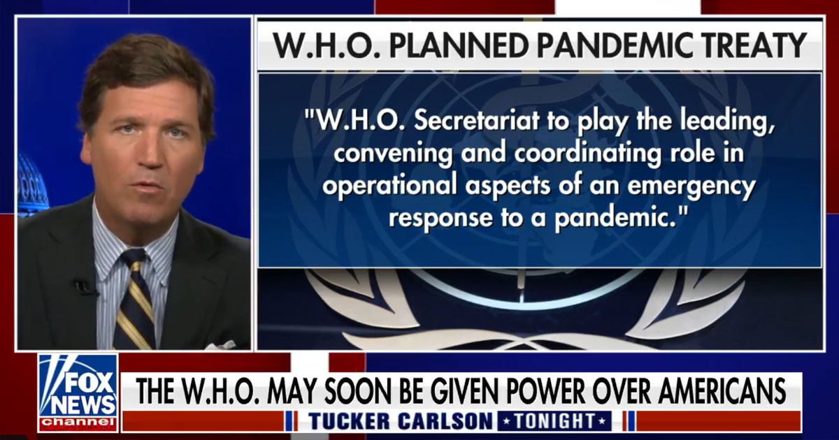 “There is no graver violation of medical ethics than this. Every physician, practicing in the United States, promises not to do what you just heard, and it would become mandatory under this treaty,” Carlson said. “And by the way, the language you just heard, that is exactly the justification that officials in several states threw out when they were caught passing out vaccines based on race. This is a power grab. It’s dangerous. It is, by the way, a reward to the very people who screwed up two years of COVID response. Oh, let’s give them more power. This is lunacy. And people who know that it’s happening are upset.”