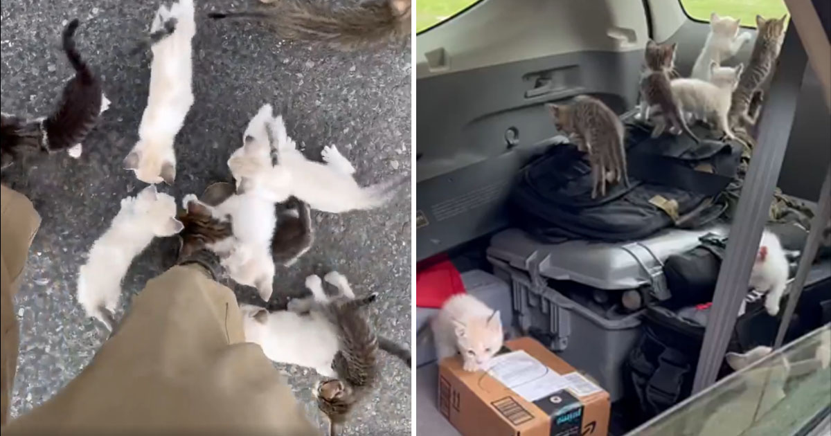 A precision rifle competition shooter attempted to save a kitten abandoned on the side of the road this week, but ended up saving an entire litter of 13 felines in an adorable twist.