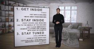 - “Step one: get inside, fast. You, your friends, your family, get inside, and no, staying in the car is not an option. You need to get into a building and move away from the windows.”