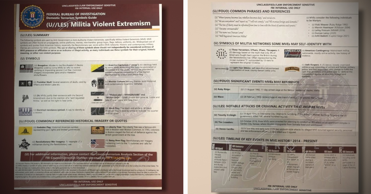 BREAKING Via Project Veritas: FBI Whistleblower LEAKS Bureau’s Domestic Terrorism Symbols Guide on 'Militia Violent Extremists’ Citing Ashli Babbitt