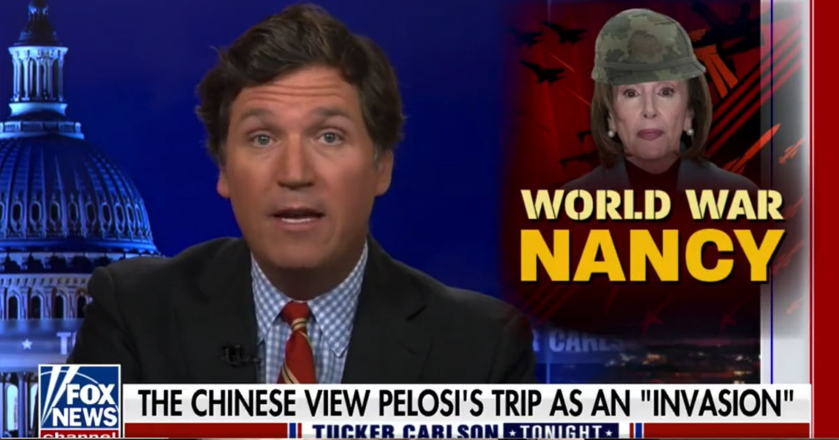 Fox News host Tucker Carlson spoke at length about House Speaker Nancy Pelosi’s trip to Taiwan during Tuesday night’s edition of his eponymous television show.