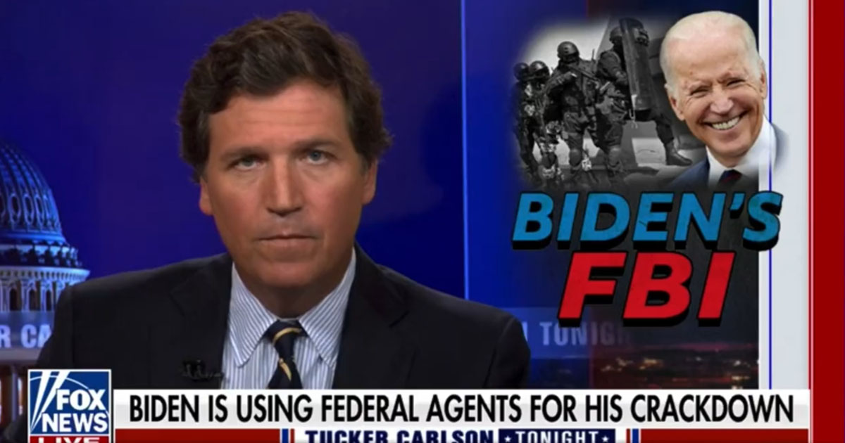 Fox News host Tucker Carlson postulated that President Joe Biden is in favor of turning the US into a one-party state, and is weaponizing federal law enforcement resources to make that a reality.