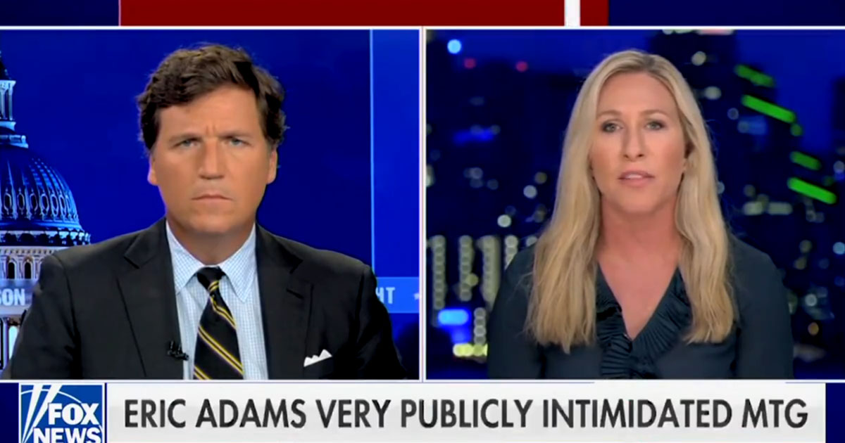 Rep. Marjorie Taylor described Eric Adams’ New York City and the prosecution of Donald Trump by Alvin Bragg as “disgusting” during an appearance the Fox News program Tucker Carlson Tonight.
