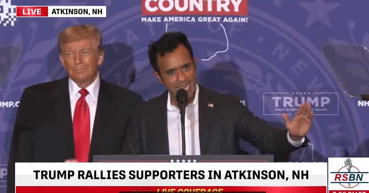 Vivek Ramaswamy speaks at a Trump rally in New Hampshire after dropping out of the race. pic.twitter.com/5OonlWGus4